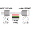 • Generator adaptor cord with Nema 14-50P 120/240V 50 Amp. plug and Nema L14-30R 120/240V 30 Amp